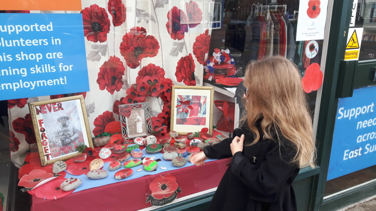 Charlotte says that the window display proved to be a positive project which engaged both creative volunteers, customers and members of the wider Horley community, she says: “Our volunteer Cris tirelessly hand-painted lots of paper poppies so a lot of time and effort went into it.’