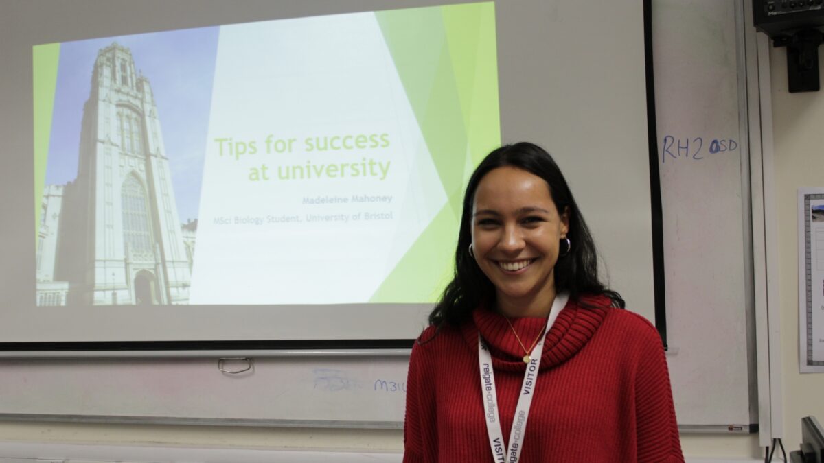 In the spring, Reigate College welcomed back a former student and charity student union officer, Madeleine Mahoney to speak to the college’s lower sixth students about her experiences of studying at university and invite them to participate in a research experiment for her masters project.